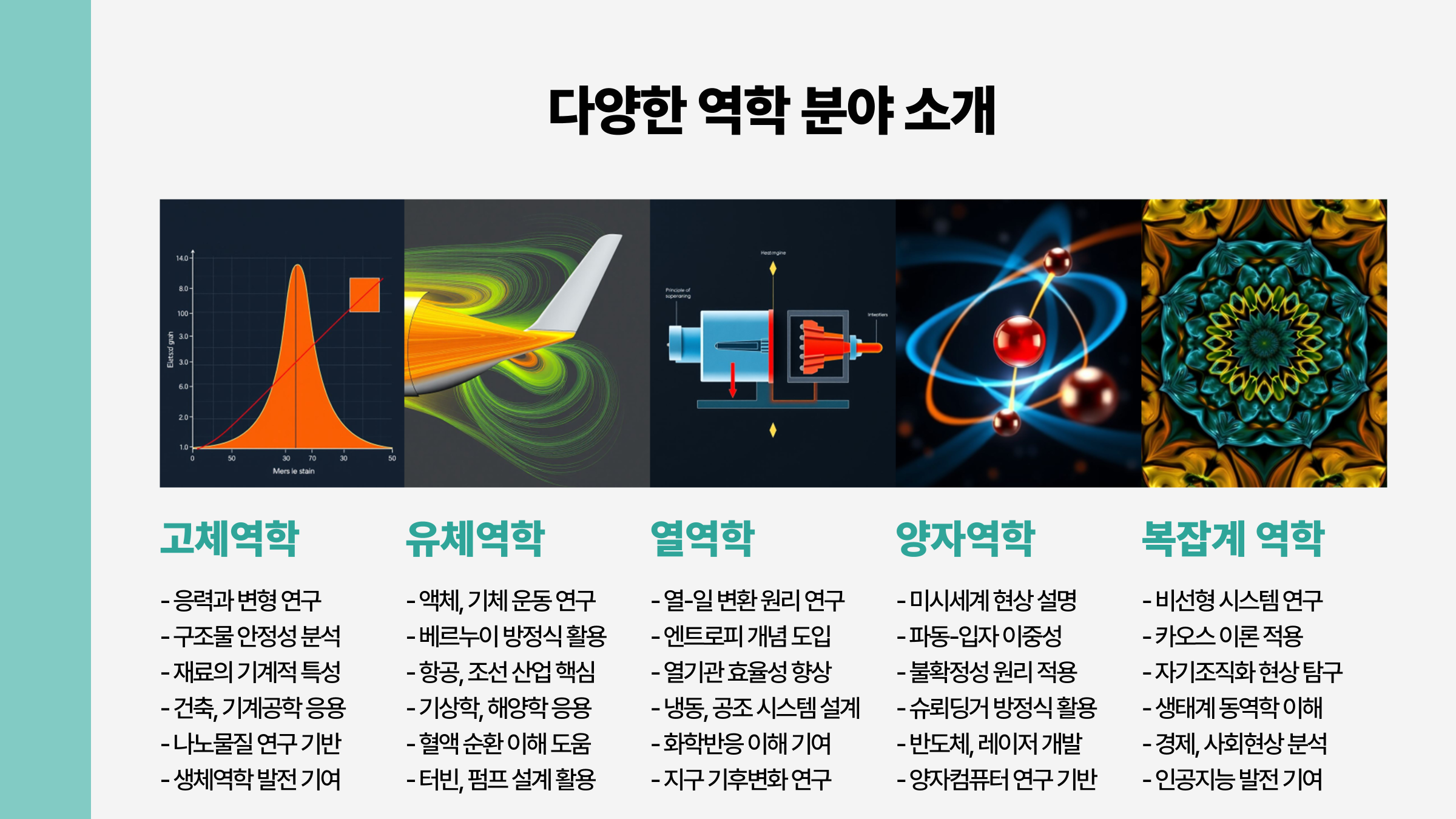📌 2. 역학의 세부 분야 (고체, 유체, 열역학, 동역학)