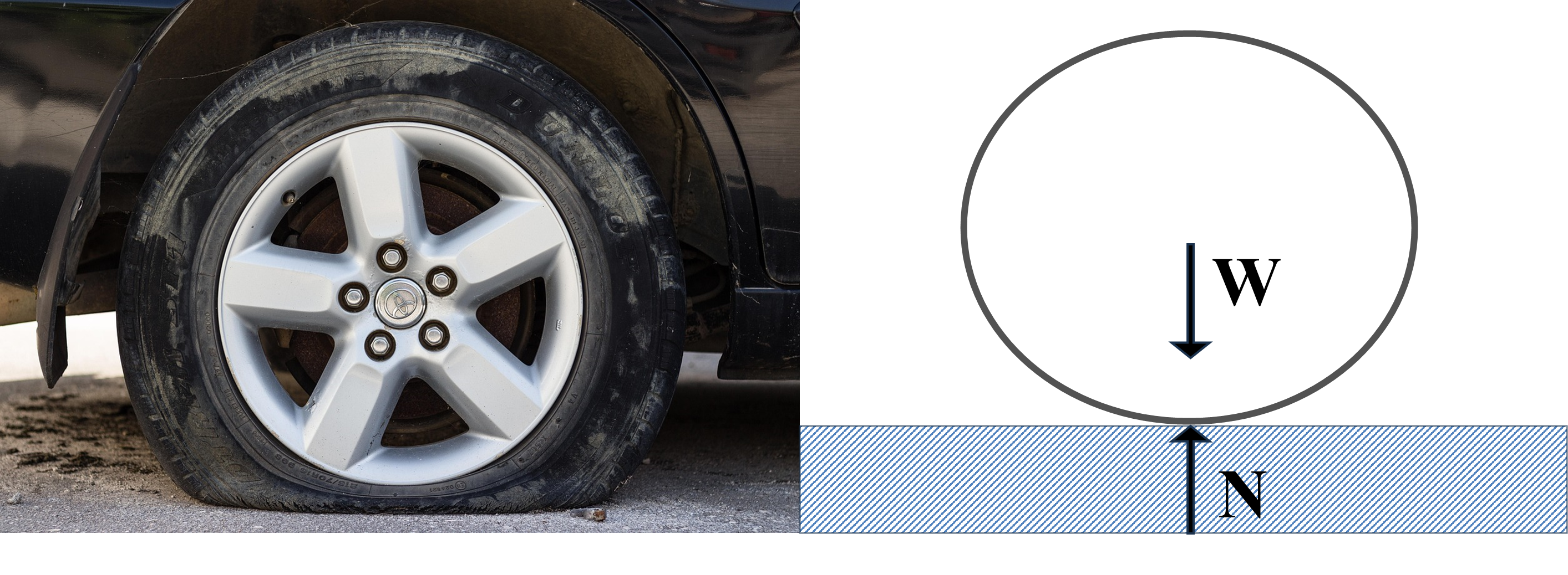 타이어는 지면과 접촉할 때 한점에서 접촉하지 않고 불특정한 면이 땅과 닿아요.